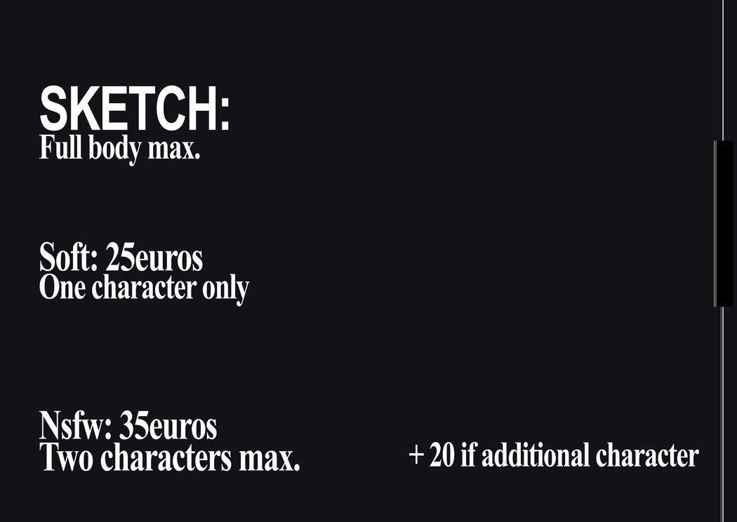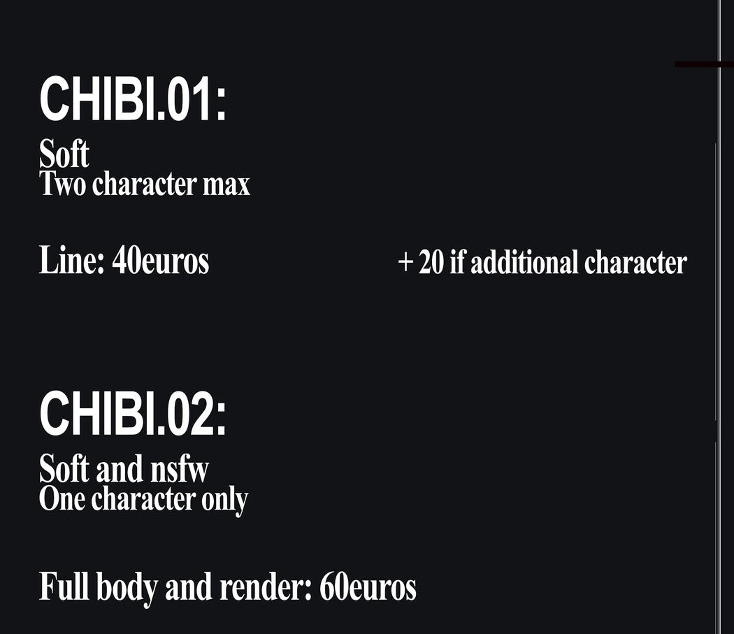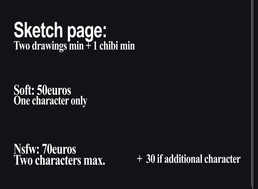Si il y a une commission, nous échangerons les références/conditions/wip/final par mail.Merci d'avoir lu, n'hésitez pas à poser des questions.